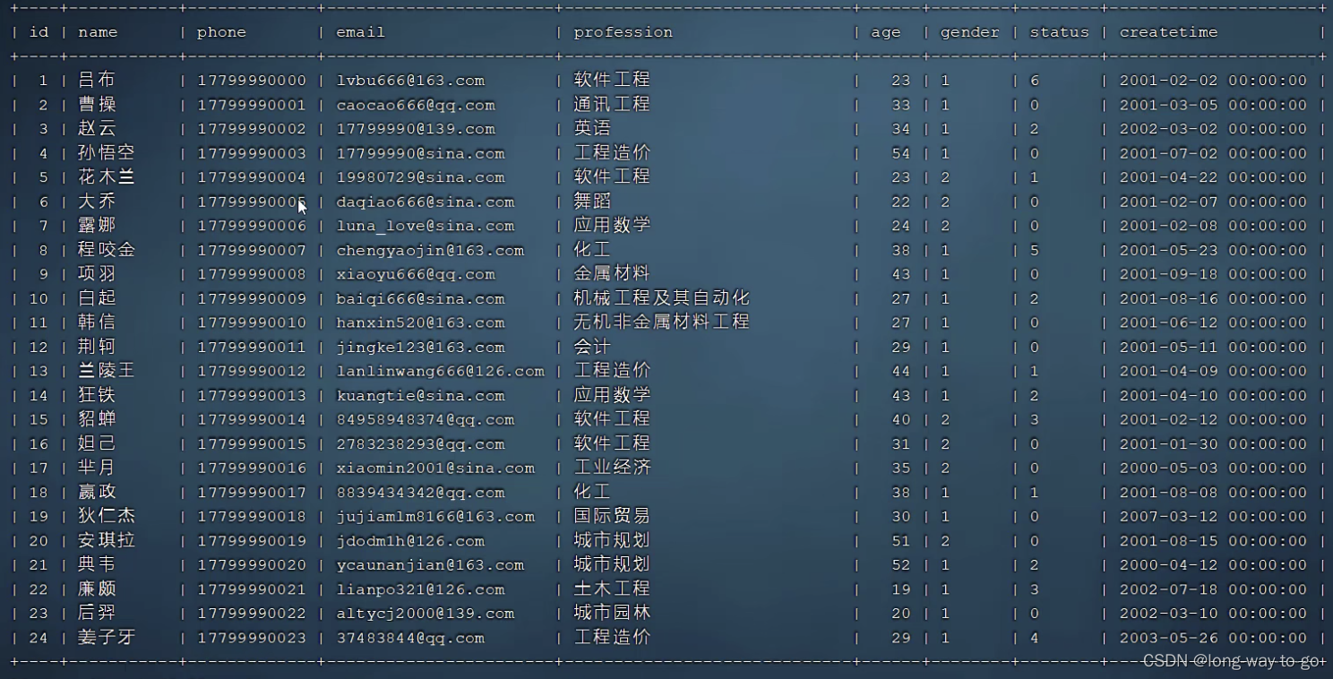 例子:user表