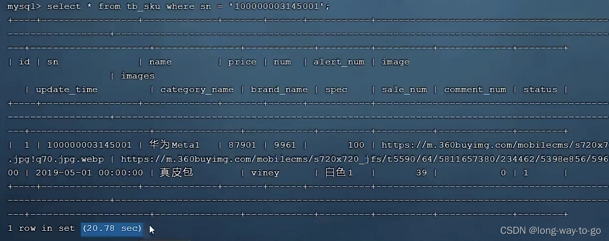 1、没构建索引时耗时20.78秒: