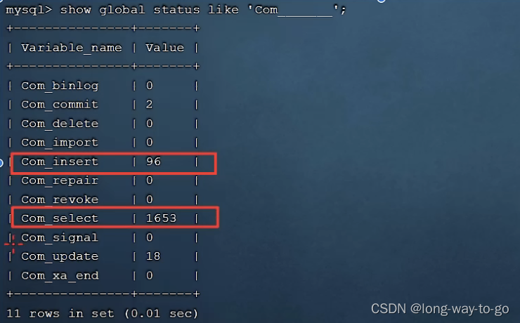 show global status like 'Com_______'; (7个下划线)