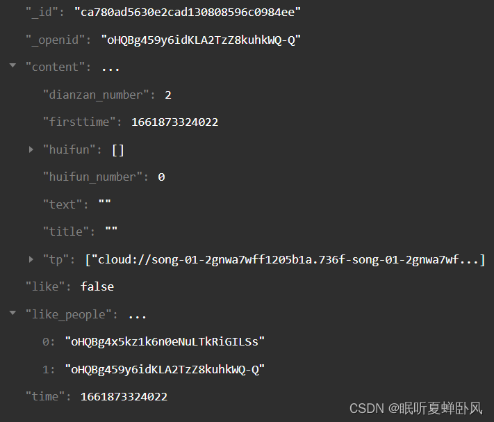 1·用云函数或者app.js获取用户openid,在每个帖子里面like_people数组里添加点赞过该帖子的用户openid。获取帖子云数据存放到suju:[]里。
