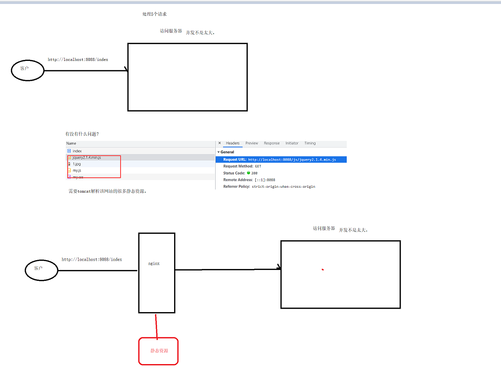 使用动静分离可以减少web应用服务器的请求数。而且还可以服务器和静态资源的耦合。