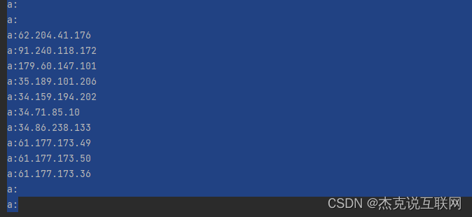 使用 httpclient + 正则表达式的方式同样正确的获取到了列表新闻的标题和详情页链接。到此 Java 爬虫系列博文第一篇就写完了,这一篇主要是 Java 爬虫的入门,我们使用了 jsoup 和 httpclient + 正则的方式提取了开源情报网站的ip和链接。当然这里还有很多没有完成,比如采集ip信息存入数据库等。