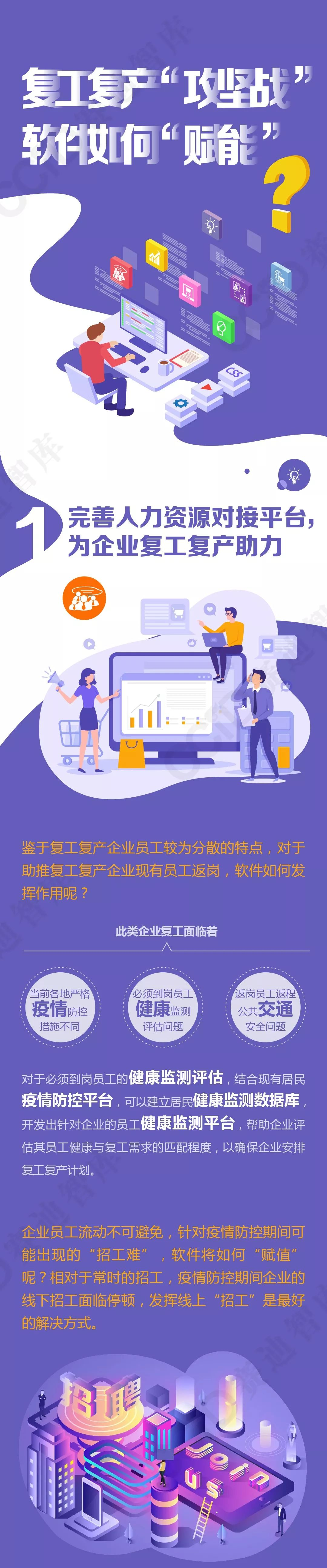 当前,武汉疫情防控“攻坚战”形势逐渐可控,其余城市“保卫战”亦无懈怠。经过3倍于正常春节假期之后,疫情防控下的企业复工复产“攻坚战”已然到来。相较于常时的复工复产,疫情防控形势依然严峻时期的企业复工复产需要面临包括复工员工健康监测、关键岗位员工招新、工作场景疫情防控、复工员工生活保障、市场需求对接等方面的综合考量。软件企业作为智力密集型的数字化运作市场主体,因其可以远程协同大多已正常开展工作,并在此次疫情防控的病例确诊、物资调配、隔离诊治等环节发挥积极作用。