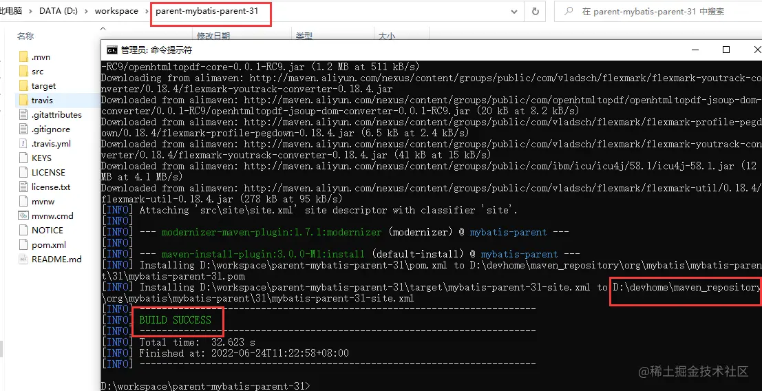 切换到你下载的mybatis-parent目录打开cmd: