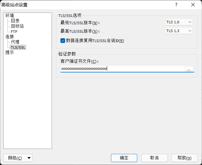 还要设置证书文件,就是服务器上的/etc/vsftpd/.sslkey/vsftpd.pem,可以sudo cp一份到用户目录,再转为用户为owner,复制到本机上,将路径填入下面的验证参数。