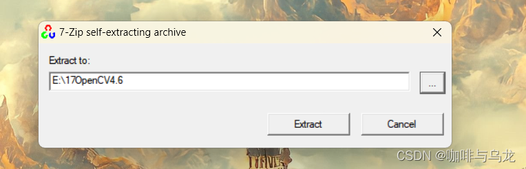 …..exe文件,本质是解压缩,我选择解压到自定义的文件夹E:\17OpenCV4.6(这是我自己创建的,你可以解压在其他位置)
