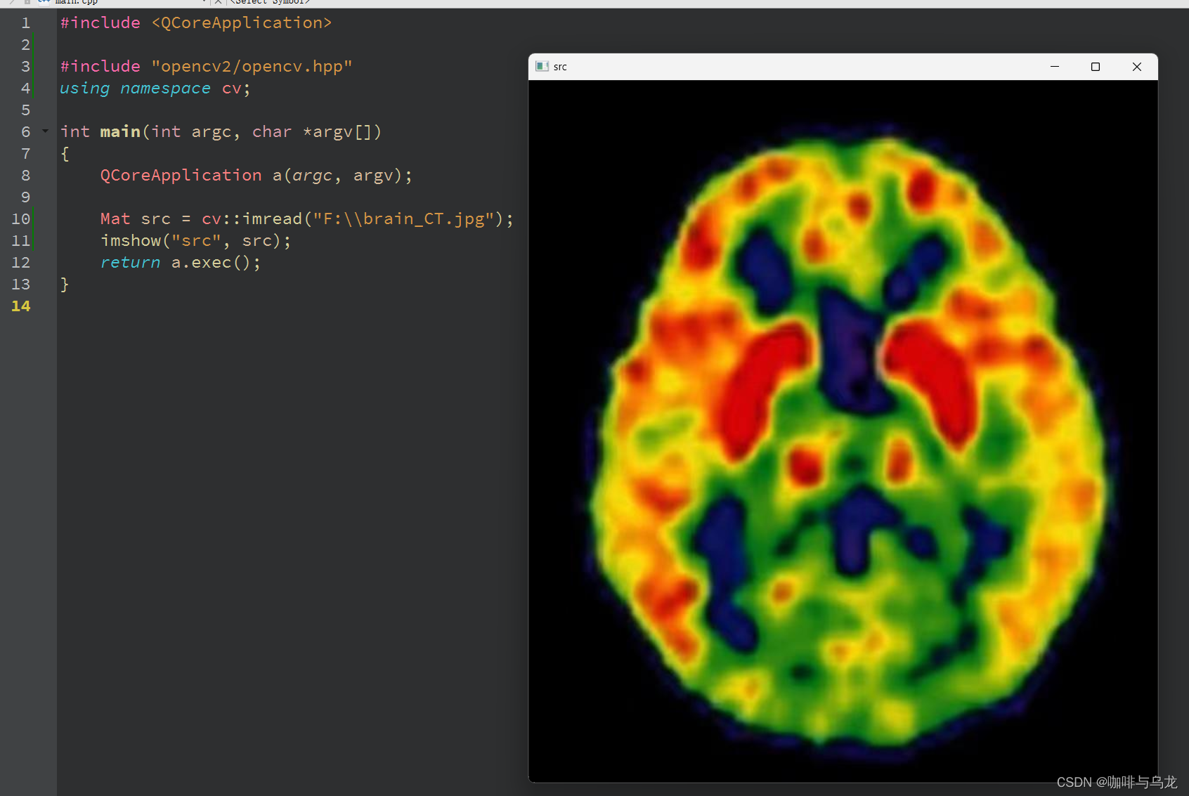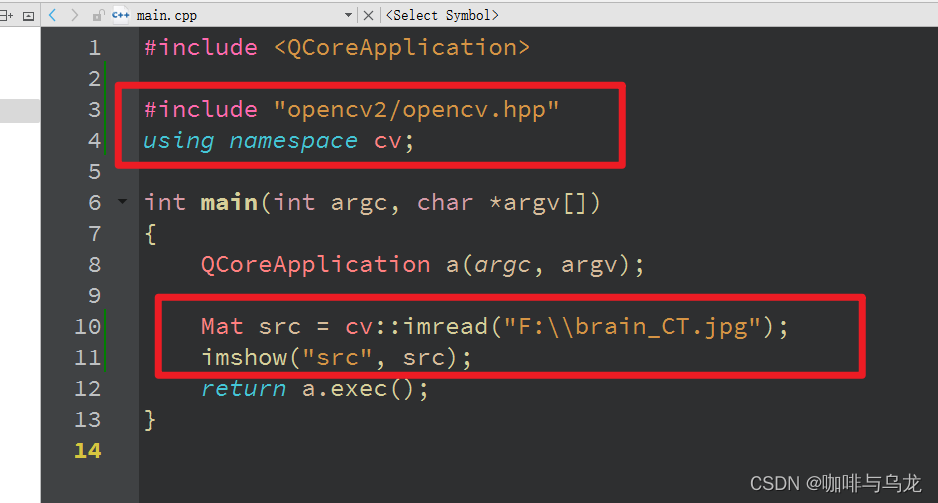 下一步—完成–执行qmake第九步,修改main.cpp,添加使用OpenCV的头文件,以及代码