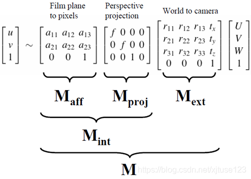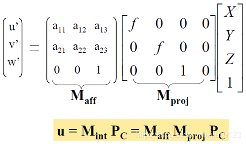 尺度变换是一种仿射变换,因此,将从(X,Y,X)到(u,v)的变换可以写为