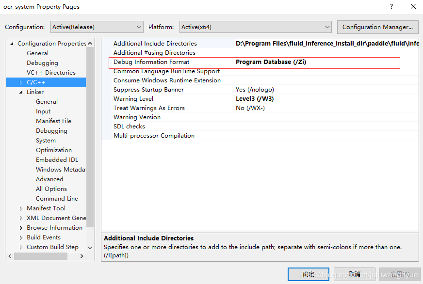 2.c++ --- 常规 ---- 调试信息格式 选 程序数据库(/Zi)或(/ZI), 注意:如果是库的话,只能(Zi)