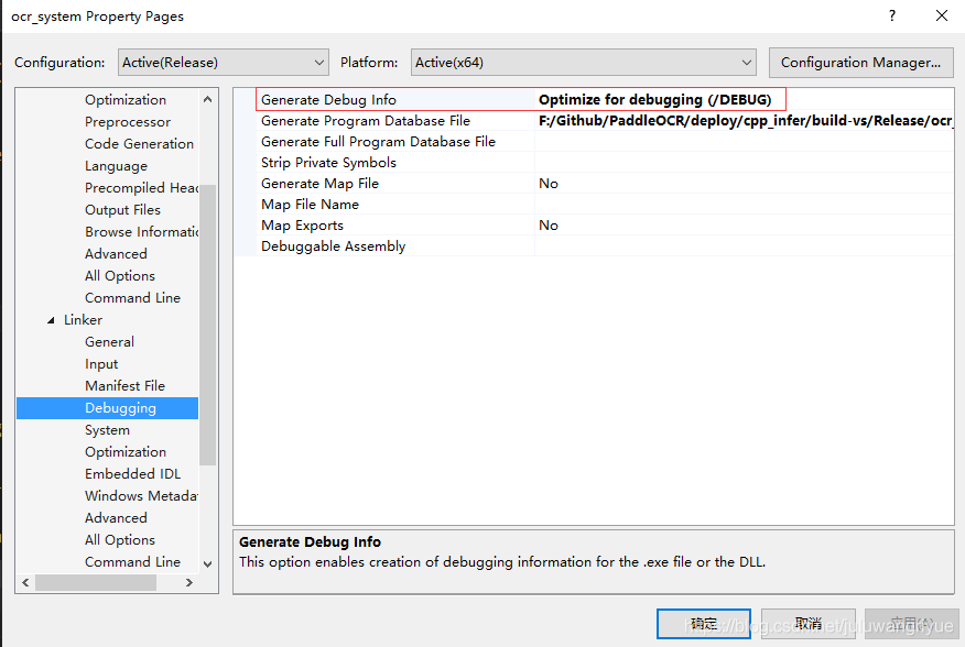 4.连接器 --- 调试 ---- 生成调试信息 选 是 (/DEBUG)