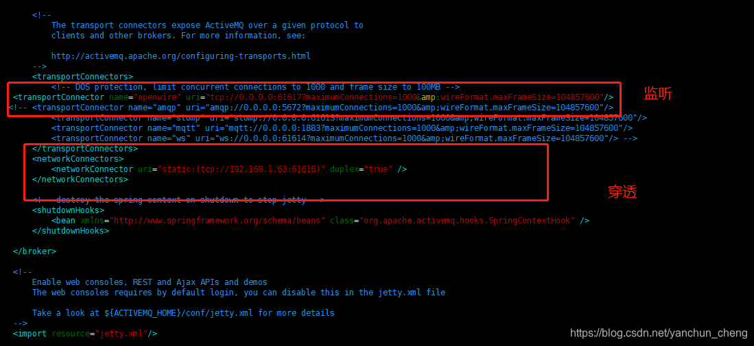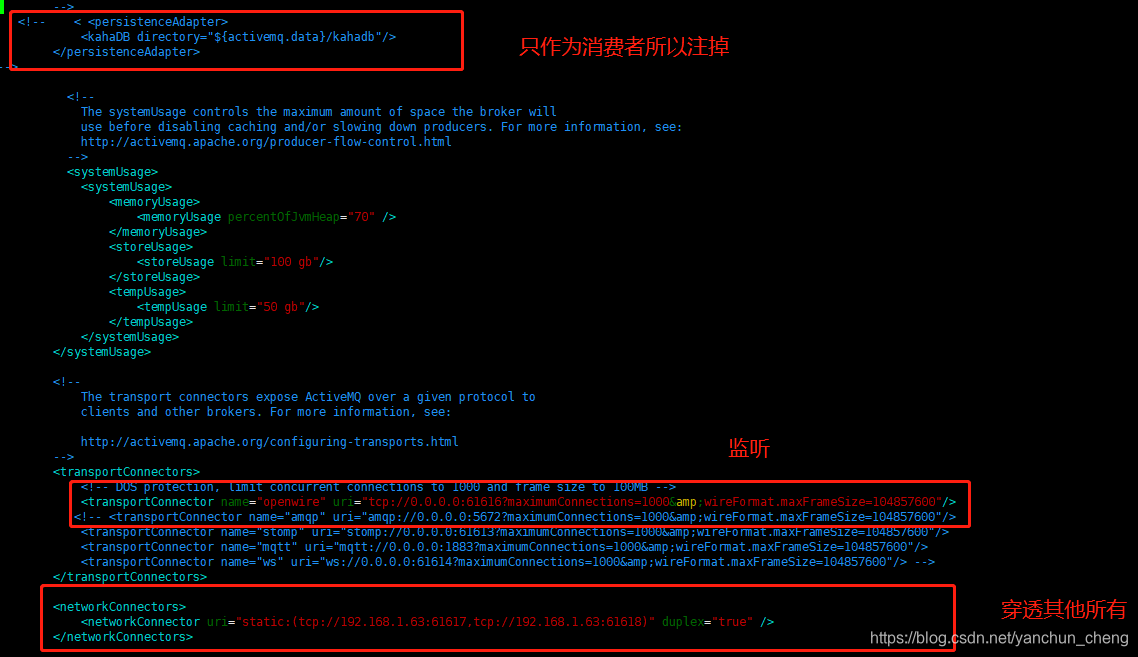 容器里activemq的配置文件拿出来. docker cp xxx:/opt/apache-activemq-5.13.3/conf/activemq.xml /myConfig/activemq/activemq-cluster.xml