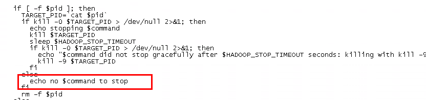 于是反查stop-all.sh脚本。发现stop-all.sh 调用的stop-dfs.sh和stop-yarn.sh。两者又调用的hadoop-daemon.sh。