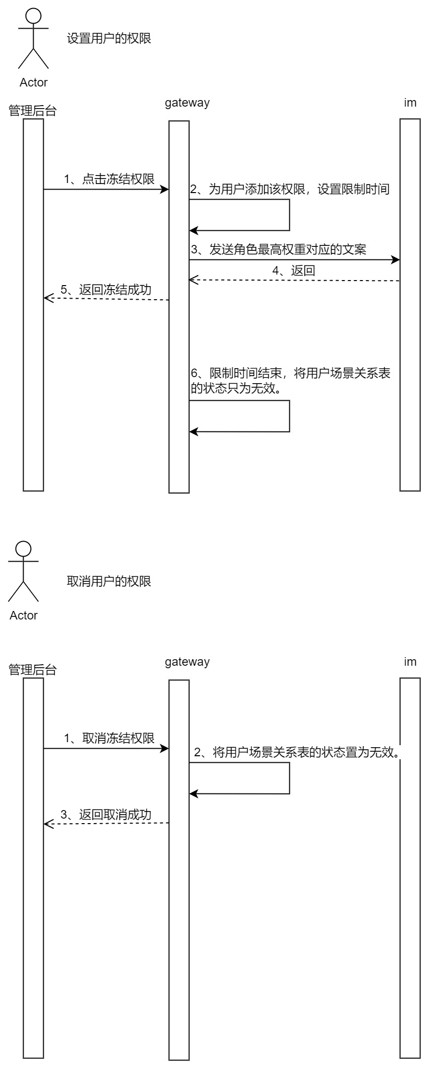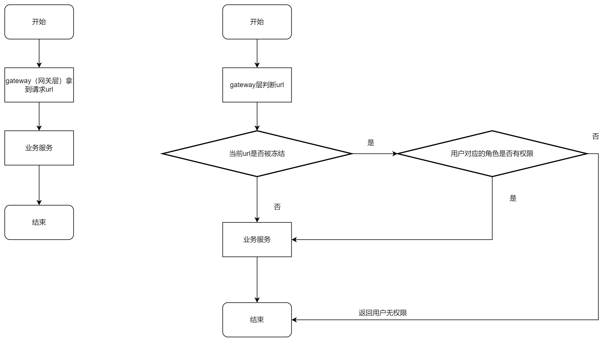 加了用户权限冻结之后,在gateway层需要对当前用户的当前url权限是否被冻结做判断,如果被冻结了,则请求直接结束,提示用户“此权限被冻结”。