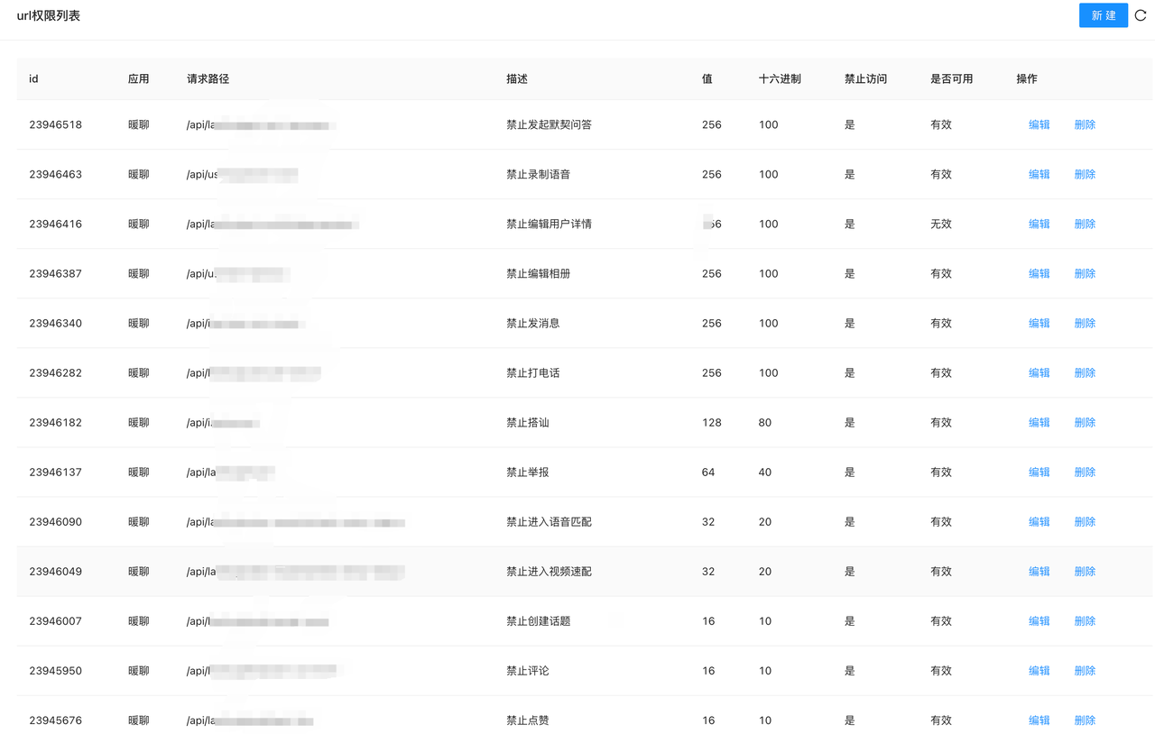 由于每个url占用一个二进制位,每封禁一个用户的url权限,就要变更用户的权限值。如果上新一个仅少数用户可访问的url,则需要更新大多数用户的url权限值,所以这里也会涉及到大量的用户权限值的刷新问题,这个问题如何解决呢。