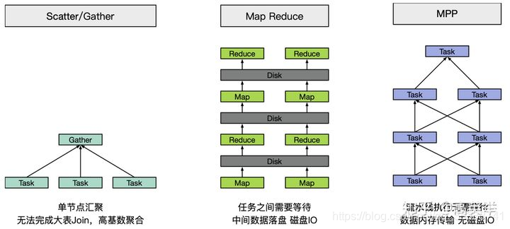 MPP:MPP学名是大规模并行计算,其实很难给它一个准确的定义。如果说的宽泛一点,Presto、Impala、Doris、Clickhouse、Spark SQL、Flink SQL这些都算。有人说Spark SQL和Flink SQL属于DAG模型,我们思考后认为,DAG并不算一种单独的模型,它只是生成执行计划的一种方式。