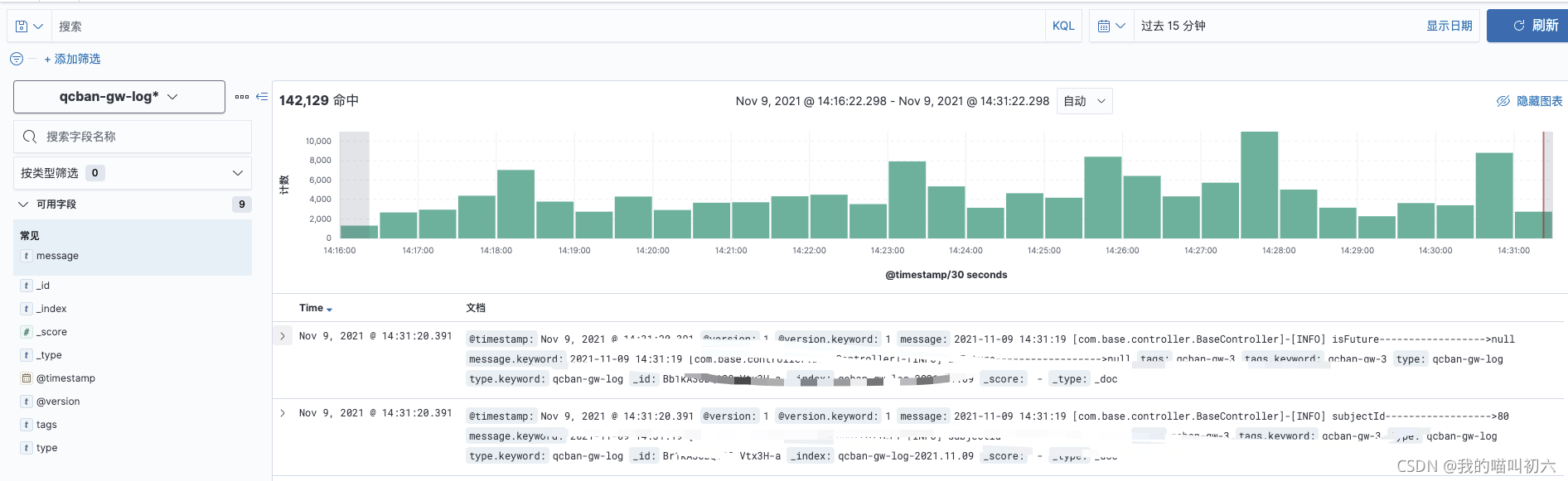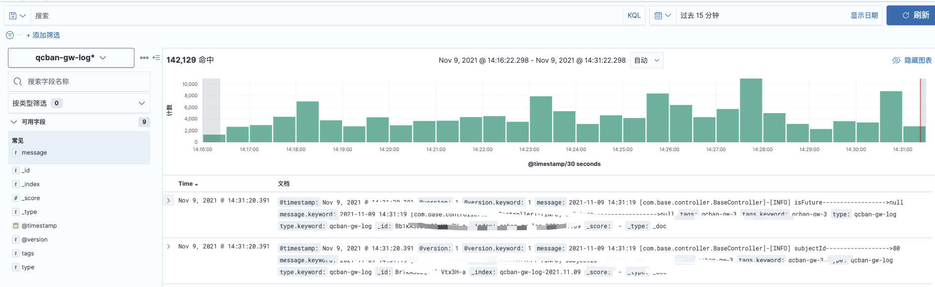 nohup bin/logstash -f config/qcban_java_log.conf --path.data=/data/qcban_log_work/ > /data/nohup_logs/qcban_logstash.log &去kibana添加索引后查看