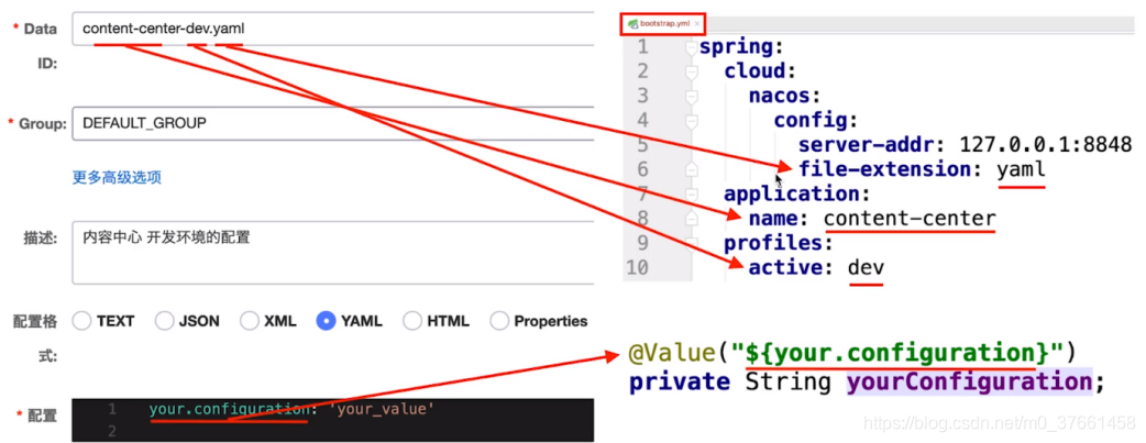 通过之前的学习,我们已经知道Spring应用对Nacos中配置内容的对应关系是通过下面三个参数控制的:
