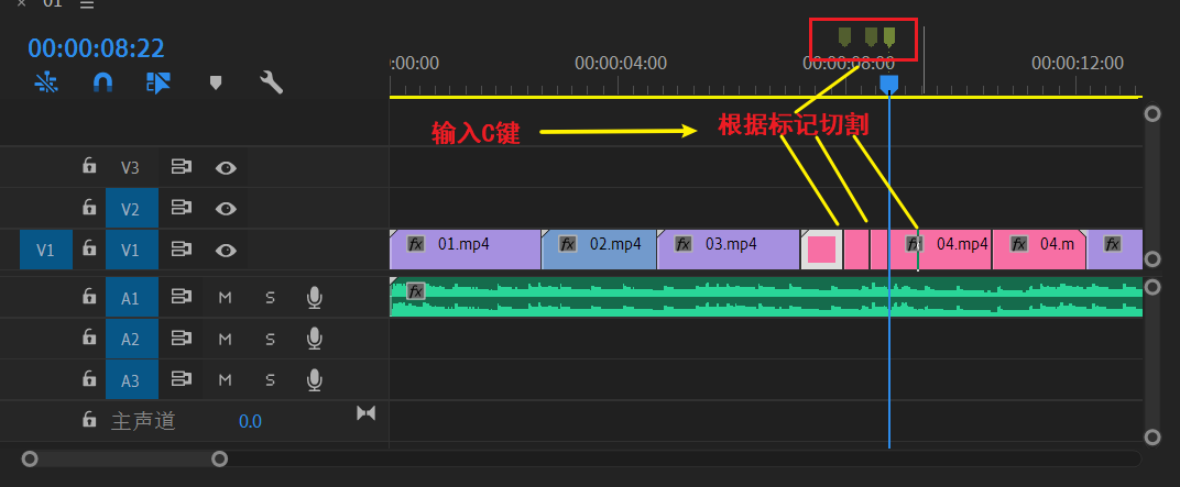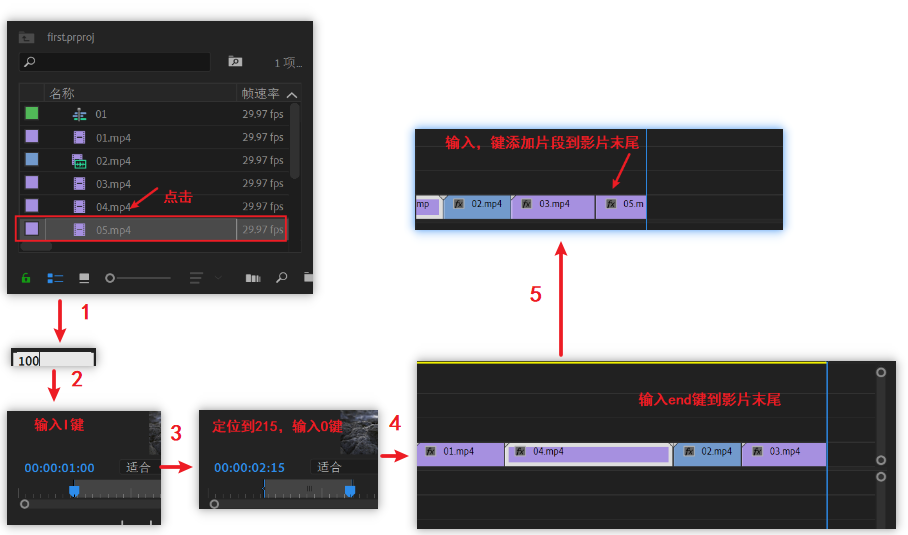 9)如何将某段的视频中的一段,先查看,再加入到主视频中:
