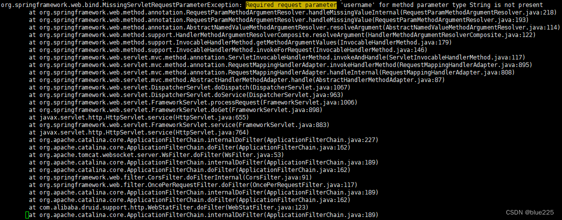 错误信息简单明确,是大家熟知的参数缺失异常:Required request parameter 'xxx' for method parameter type String is not present