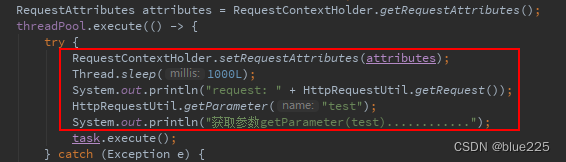 - 如果子线程thread1处理任务的时间较长,调用了getParameter方法,这时request.didQueryParameters值将再次被更新为true