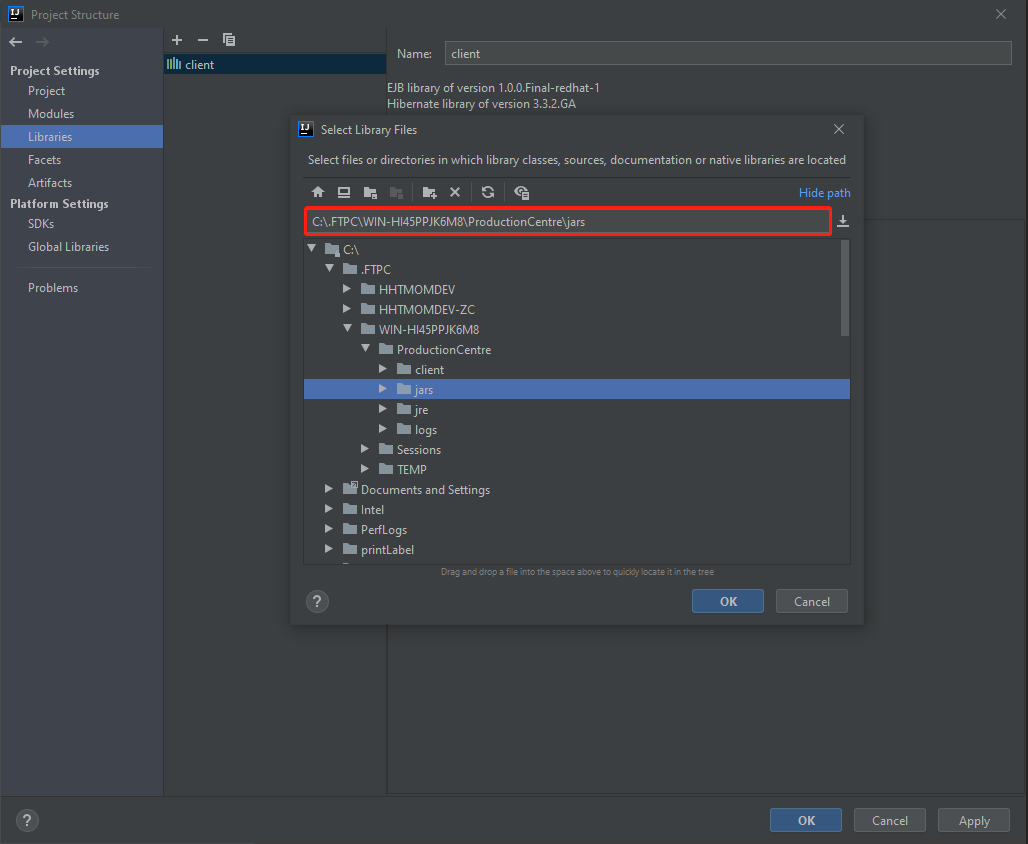 5、配置FTPC Libraries,点击+->Java,选择FTPC客户端jar包。