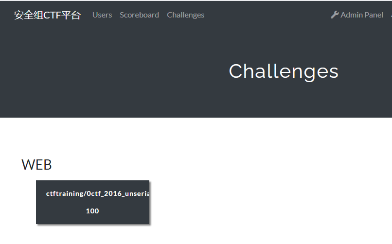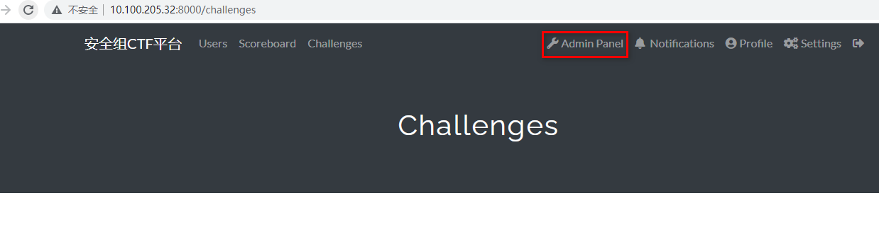 进入CTFd界面,点击Admin Panel进入管理配置界面