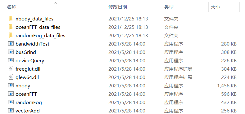 找到 bandwidthTest 和 deviceQuery 这两个exe文件。