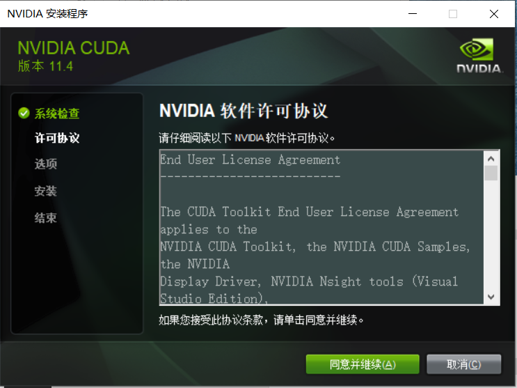 进入CUDA安装界面,我的路径是:H:\Softwares\CUDA\CUDA11.4.0\Installation\Development\extras\demo_suite