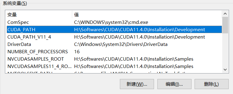 然后配置环境变量,系统变量中有如下两个CUDA的路径就可以 了。
