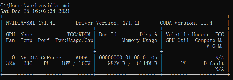 在cmd中输入 nvidia-smi