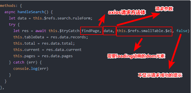 let res = await this.$tryCatch(findPage, data, this.$refs.smallTable.$el, false)