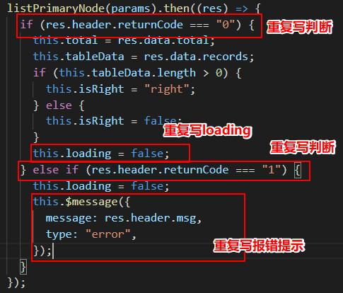 大家平时写axios请求的时候,重复代码快写吐了吧,类似下面这种。