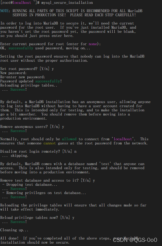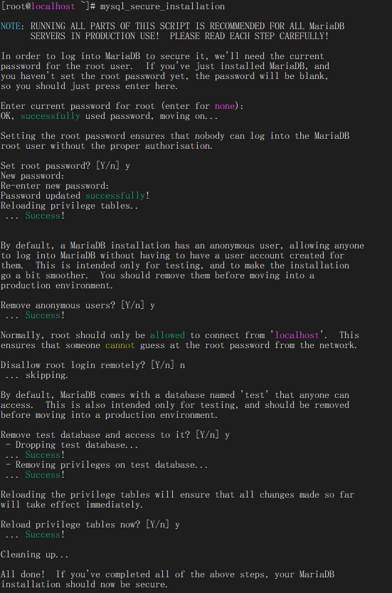 #初始化 mariadb 并配置 root 密码