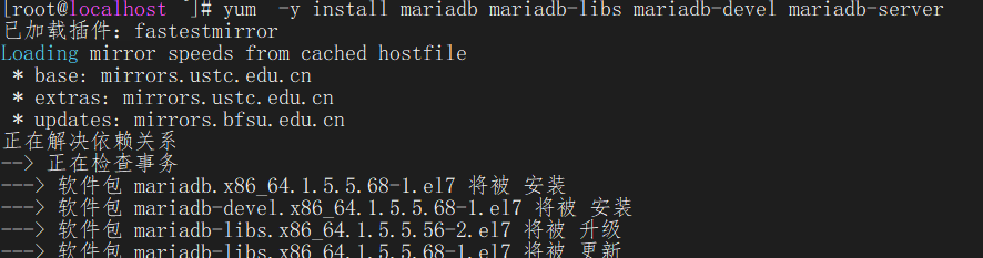 yum -y install mariadb mariadb-libs mariadb-devel mariadb-server