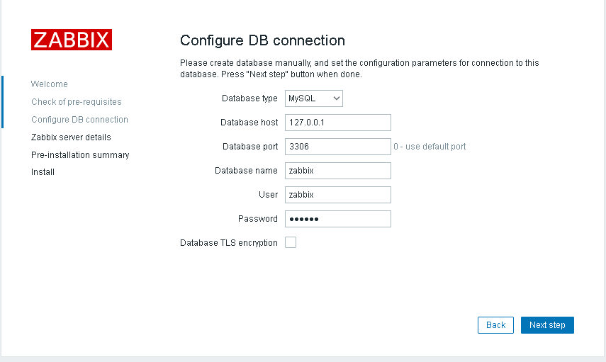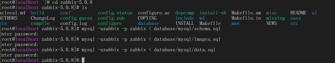 mysql -uzabbix -p zabbix < database/mysql/schema.sql