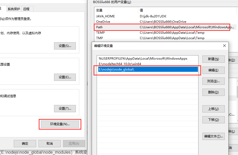 (2)添加用户变量path(E:\nodejs\node_global\)
