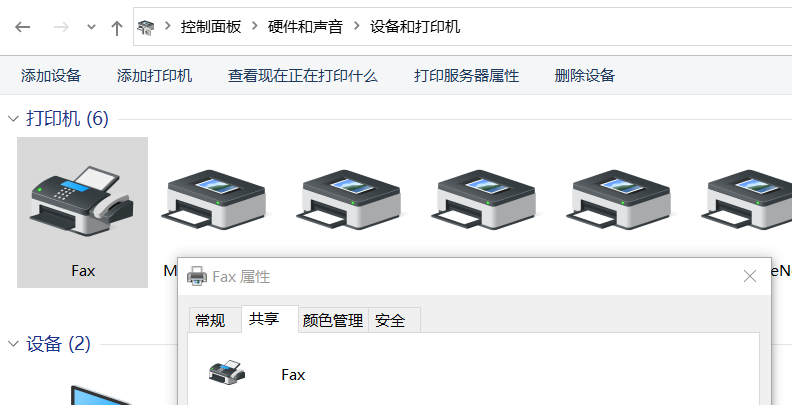 二、共享打印机。控制面板—硬件和声音—设备和打印机 找到打印机—右键—打印机属性 设置共享打印机