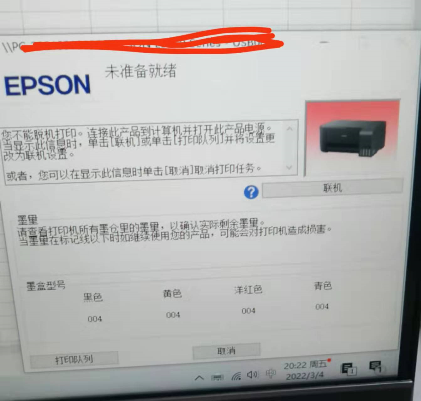 遇到这个情况,我重启了一下打印机,就可以了,或者删掉打印机重新连接。