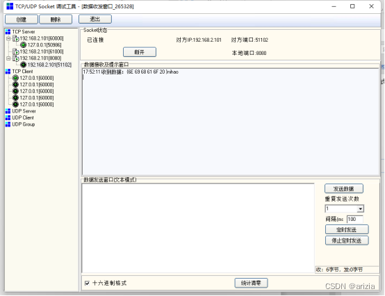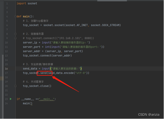 注:tcp使用send发送数据,而且tcp是发送之前就已经建立了连接,就不需要再写端口号了