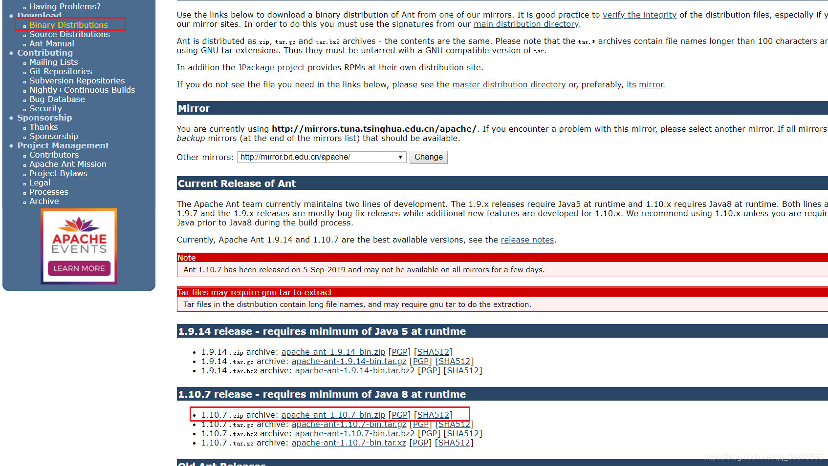 由于Zookeeper是由Ant编译,需下载Ant并安装配置; 下载地址: https://ant.apache.org/bindownload.cgi
