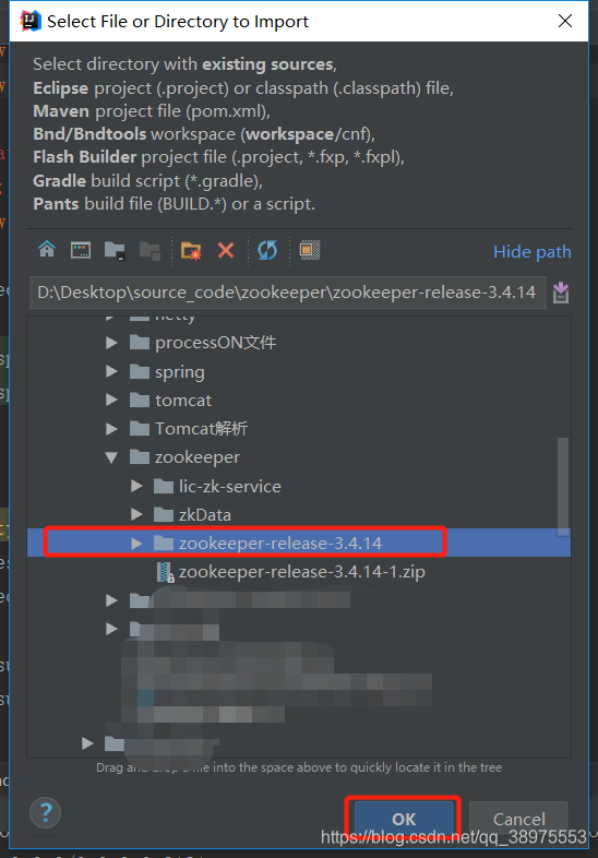 方式2: idea开始界面 => Import Project =>选择已编译的zookeeper项目文件