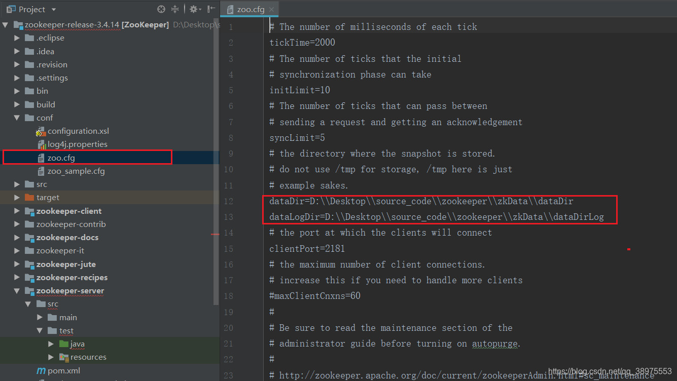 zoo.cfg地址: D:\Desktop\source_code\zookeeper\zookeeper-release-3.4.14\conf\zoo.cfg