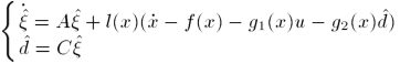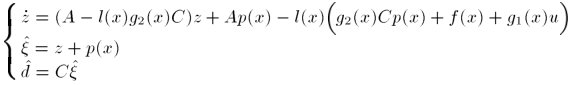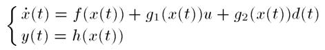 其中,x、u、d分别为状态向量、输入向量、外部扰动向量;f(x)、g1(x)、g2(x)是关于x的光滑函数。
