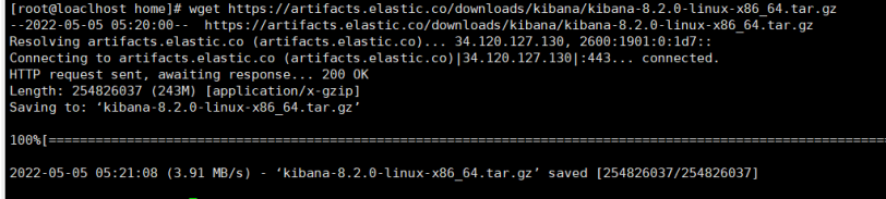 $wget https://artifacts.elastic.co/downloads/kibana/kibana-8.2.0-linux-x86_64.tar.gz