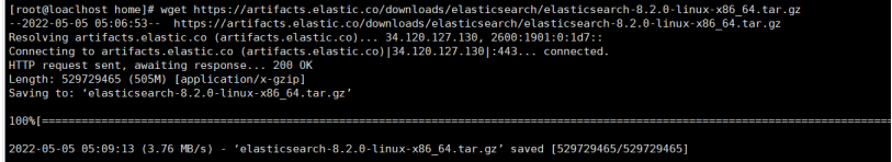 $wget https://artifacts.elastic.co/downloads/elasticsearch/elasticsearch-8.2.0-linux-x86_64.tar.gz