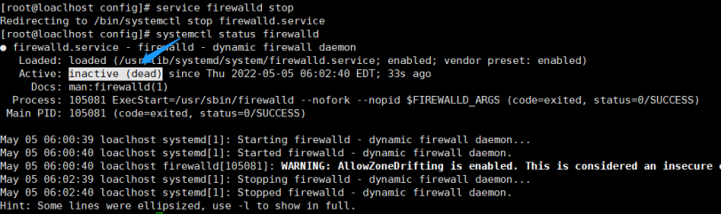 $service firewalld stop