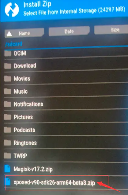 adb push xposed-v90-sdk27-arm64-beta3.zip /sdcard/