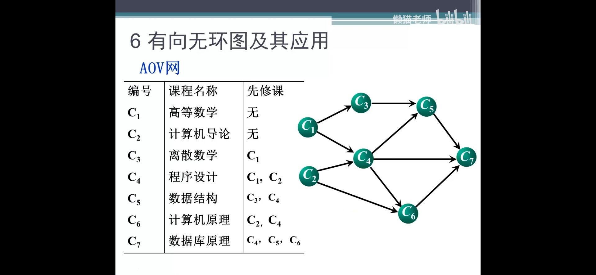 3. AOV网中不能出现回路(如果有回路,说明某项活动以自己作为先决条件,不允许)