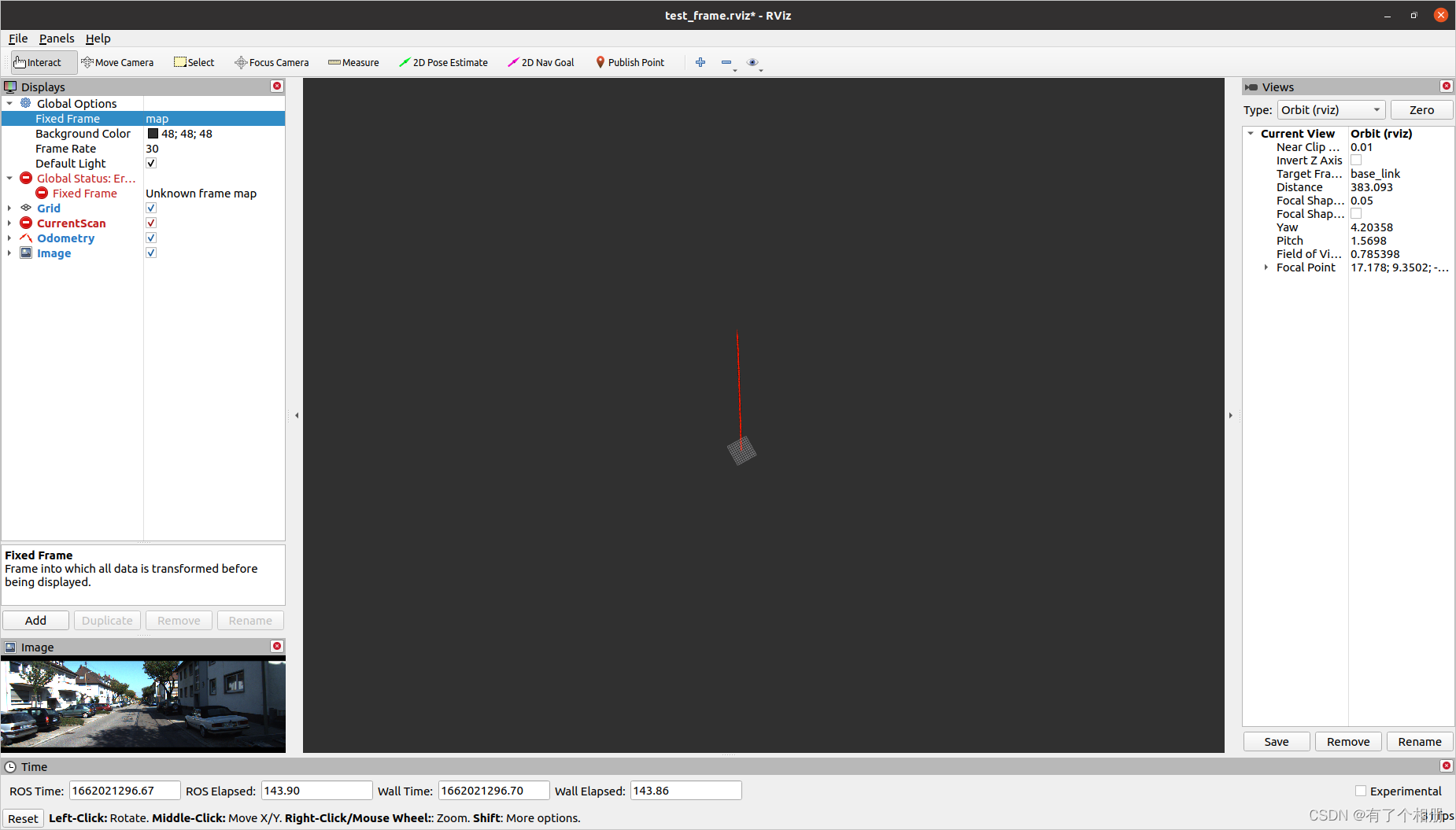 结局方法:在test_frame_node.cpp第33行可以看到“/map",改成”map“再catkin一下就行,结果如下: