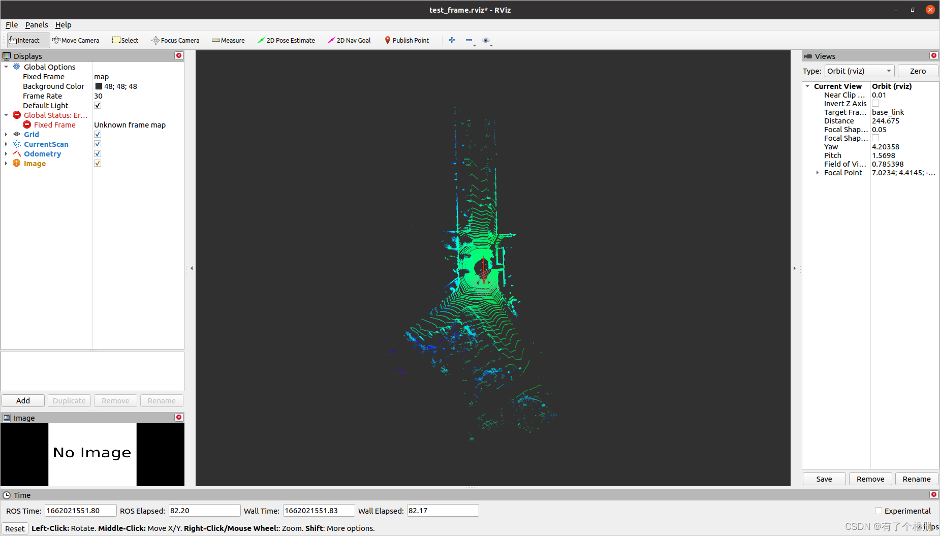 结果如下,没有显示点云地图。